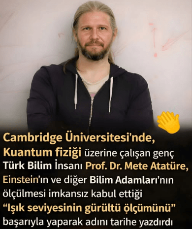 Cambridge Üniversitesi’nde, Kuantum fiziği üzerine çalışan genç Türk Bilim İnsanı Prof.Dr Mete Atatüre, Einstein’ın ve diğer Bilim adamları’nın ölçülmesi imkansız olarak kabul ettiği “Işık seviyesinin gürültü ölçümünü” başarıyla yaparak adını tarihe yazdırdı.